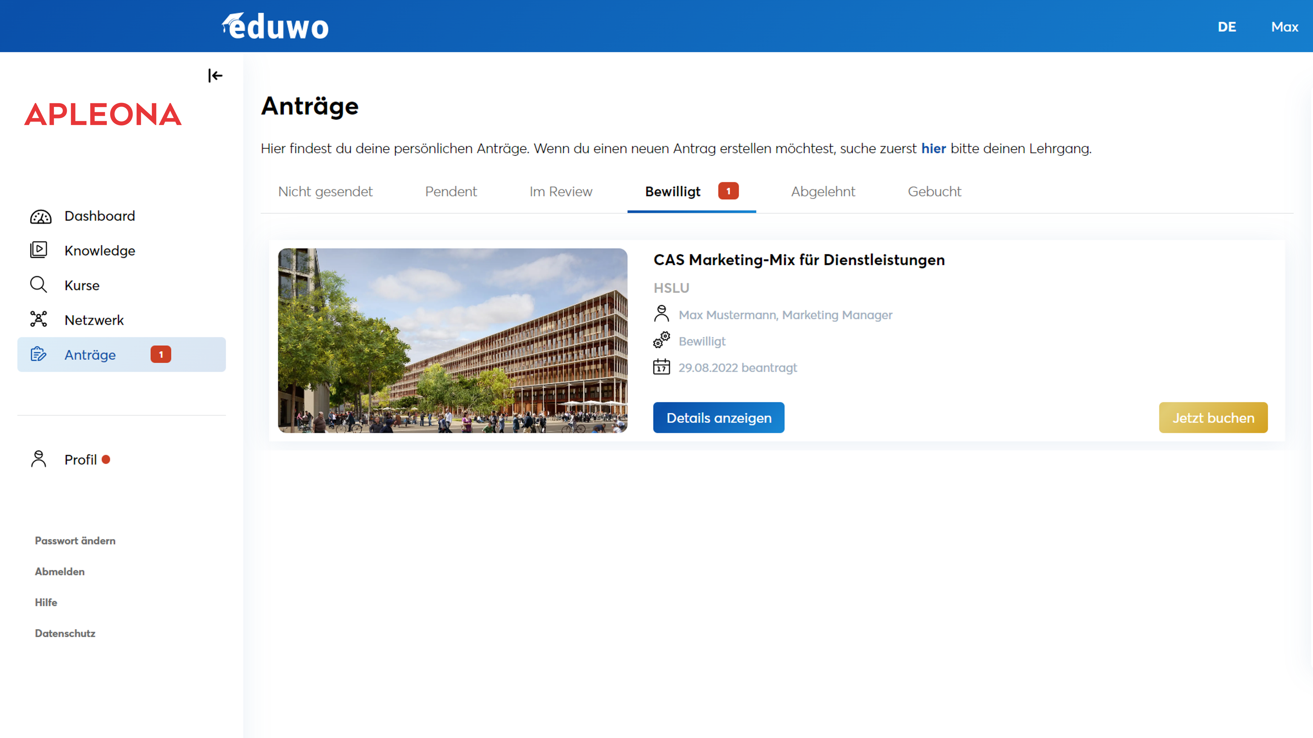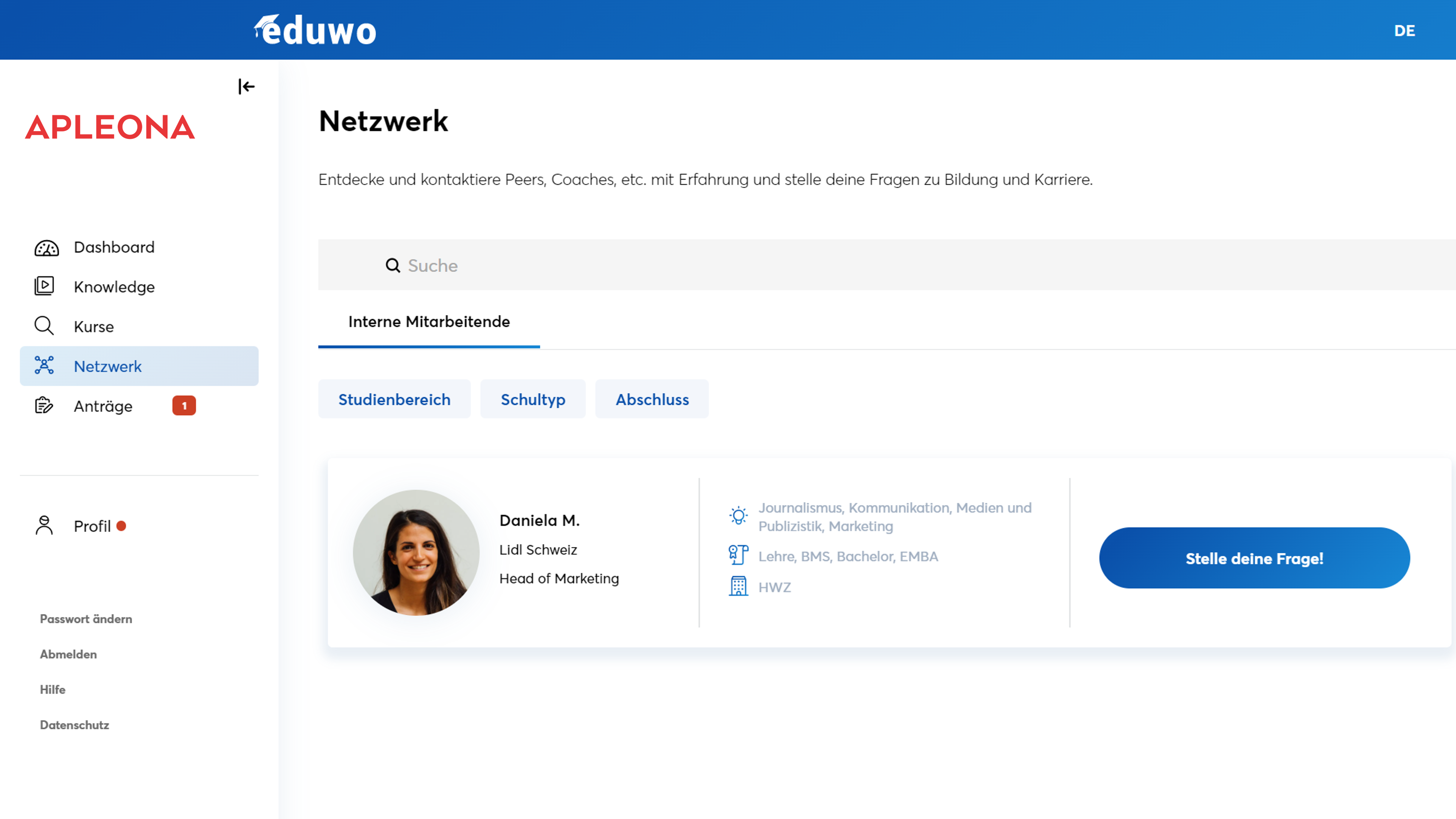Melde dich als Mitarbeitender von Apleona über eduwo für einen Lehrgang oder Kurs an und profitiere von exklusiven Vorteilen.